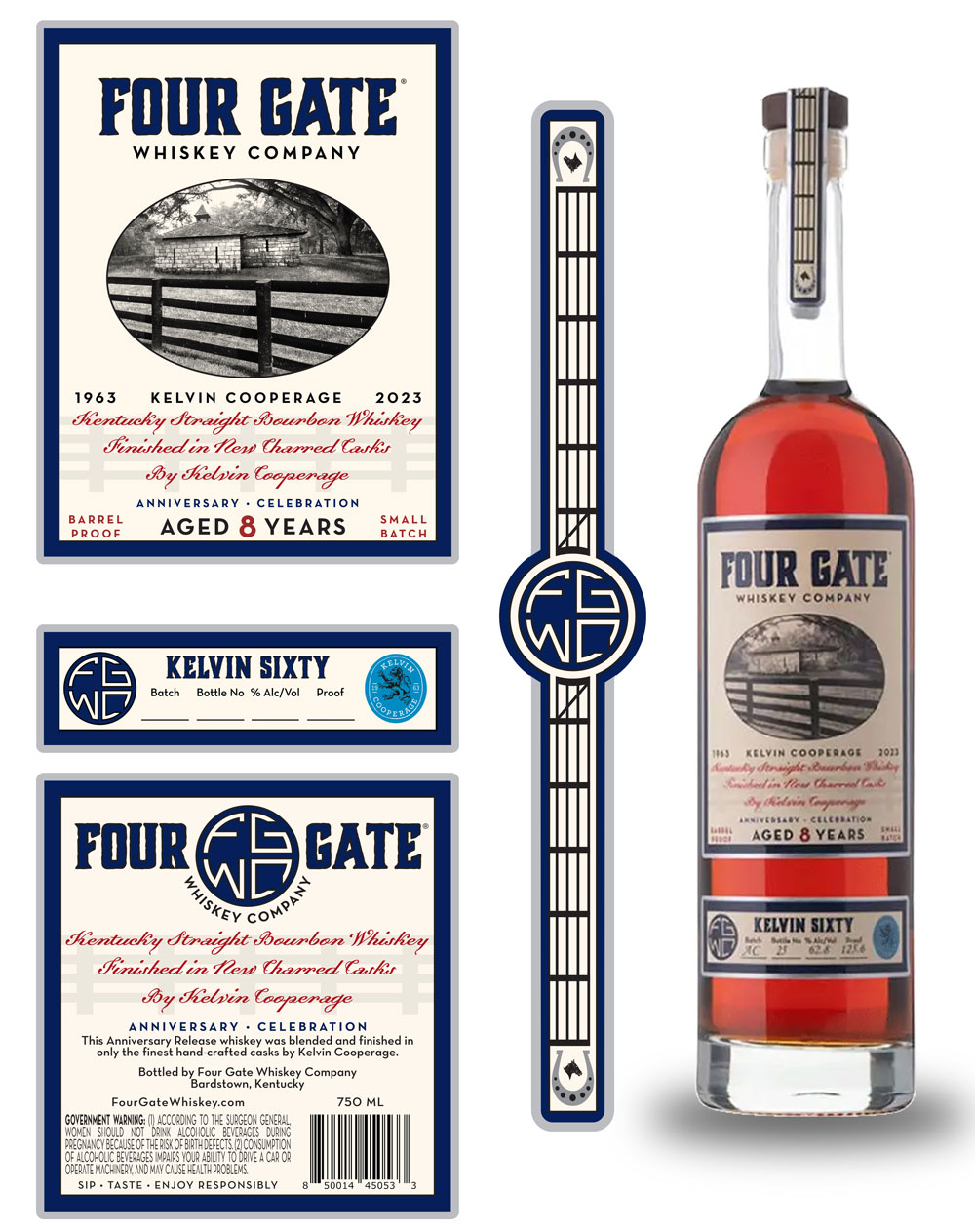 - Attention to Detail: Worked hand-in-hand with the client, paying close attention to their detailed specifications and ensuring the labels accurately represented the premium quality of Four Gate Bourbon.